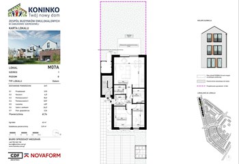 Mieszkanie 7.A typu Dalem to kompleksowe, 3-pokojowe mieszkanie o powierzchni 61,76 m². Mieszkanie składa się z salonu z aneksem kuchennym, dwóch sypialni, łazienki i pomieszczenia gospodarczego. Mieszkanie znajduje się na parterze, ma funkcjonalny układ i posiada przestronny ogródek o powierzchni 62 m², który usytuowany jest od południowo-zachodniej strony. Lokal posiada dodatkowe praktyczne pomieszczenie gospodarcze.